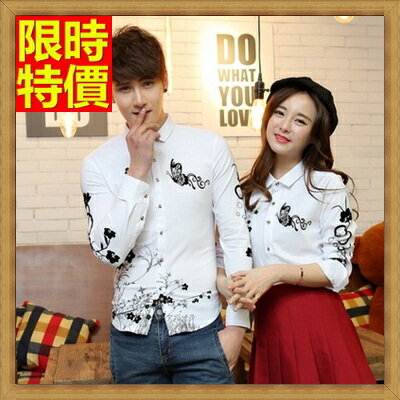 ☆情侶裝長袖襯衫-韓版個性休閒印花純棉男女襯衫(兩件)6色68s38【獨家進口】【米蘭精品】